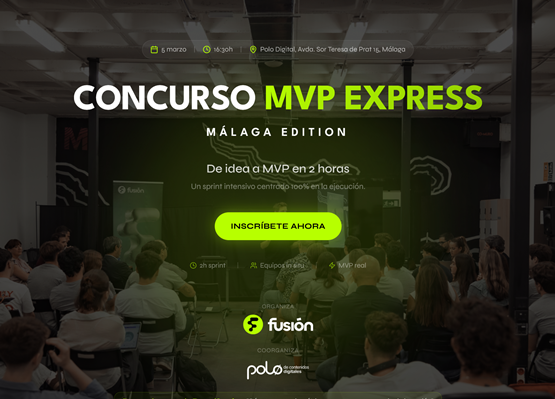 Un concurso de 2h dirigido a emprendedores, makers, perfiles técnicos y de negocio. 100% práctico, 0% teoría. En solo 2 horas, pasarás de una idea a un MVP funcional, abordando problemas reales y aprendiendo a validar ideas de negocio.